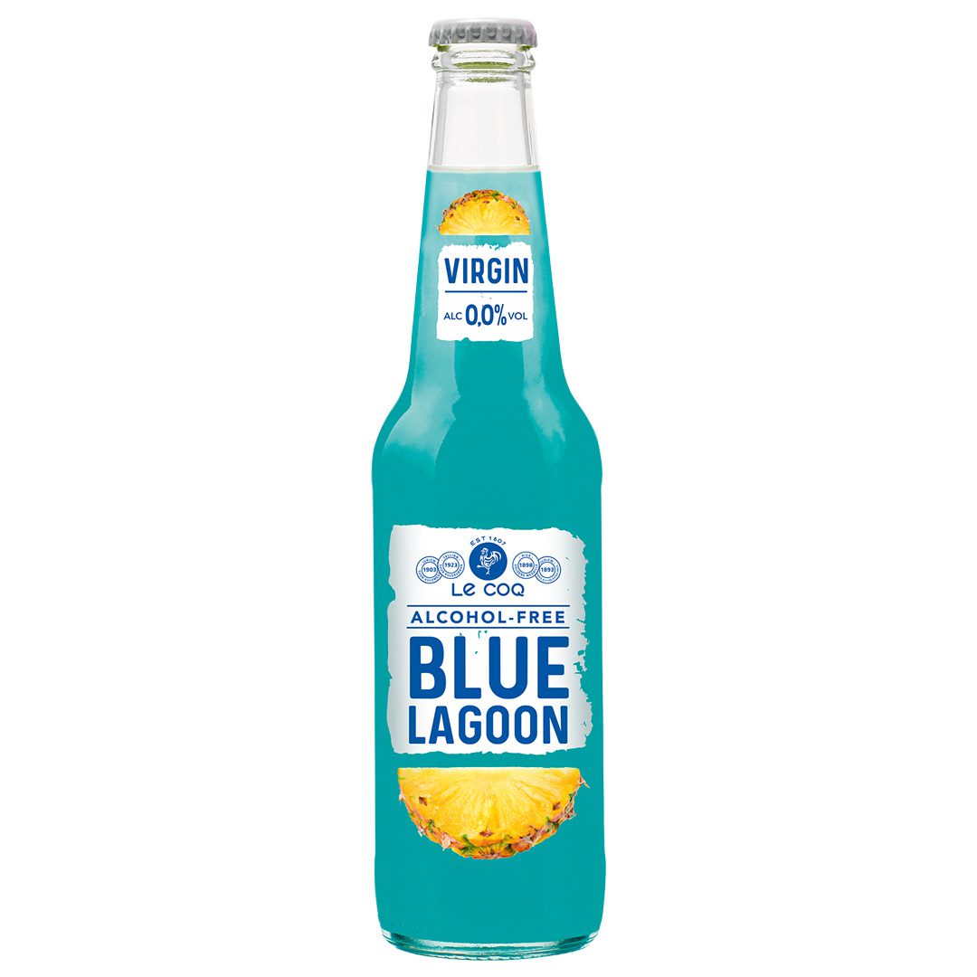 Le Coq 0.0% Blue Lagoon entführt Sie mit dieser spritzigen Mischung aus Ananas, Zitrusfrüchten und einem Hauch von blauem Curaçao in eine Sommeroase.